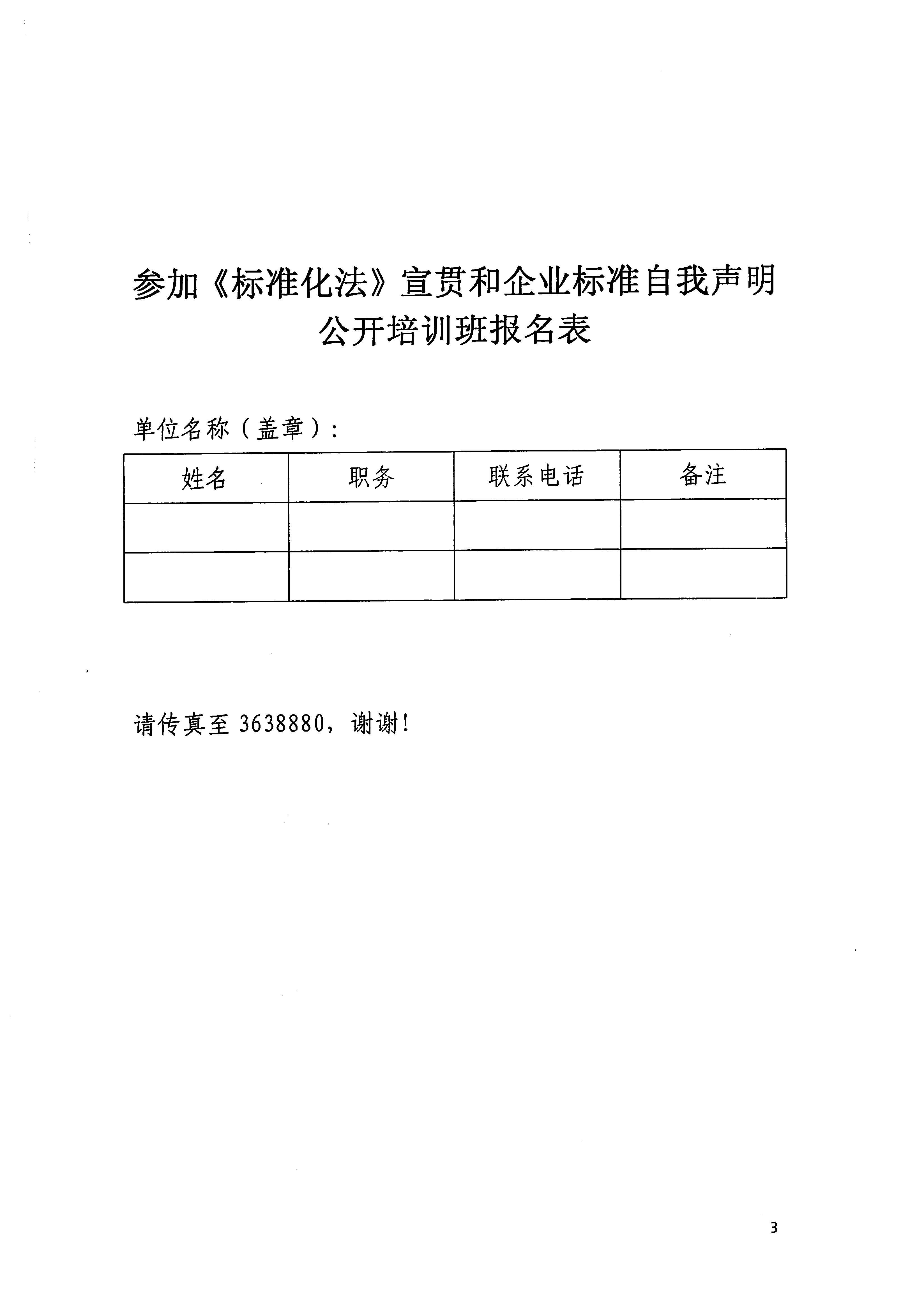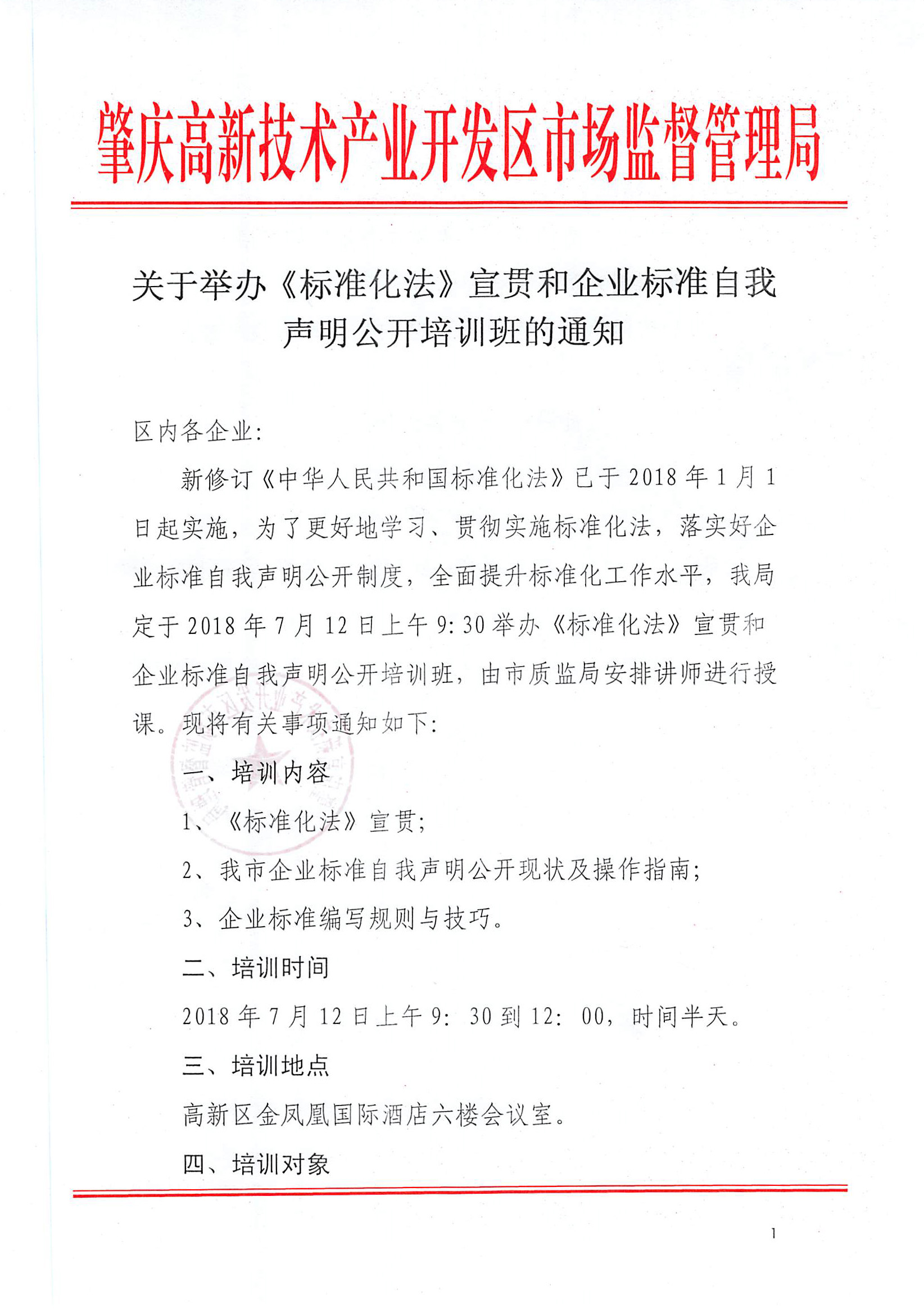 关于举办《标准化法》宣贯和企业标准自我声明公开培训班的通知